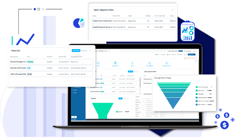 Houd grip op je verkoopkansen en werk gericht naar je doelen met interactieve offertes en krachtige opportunity management. Voorspel je omzet met vertrouwen via visuele pipeline-rapportages en interactieve dashboards.
