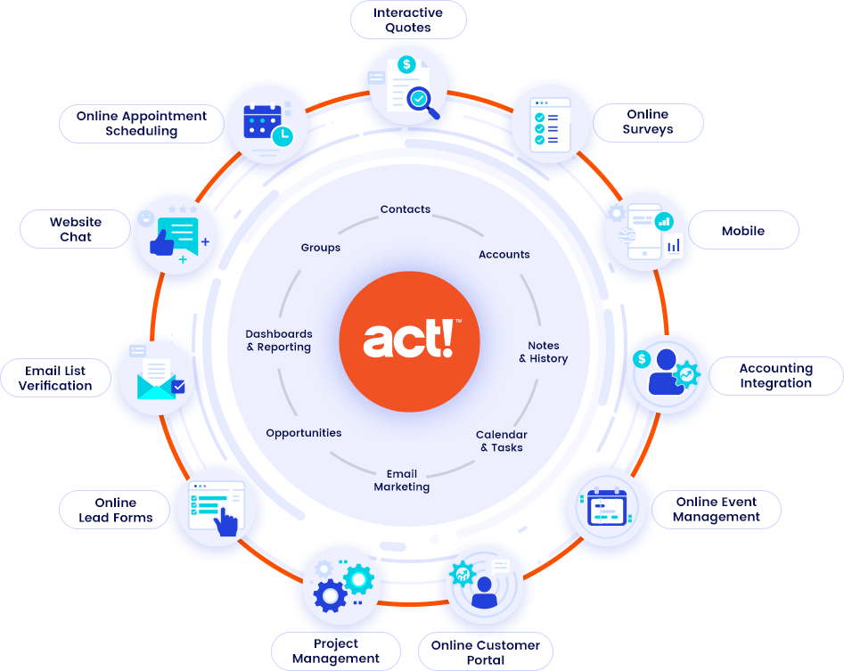 Zet Act! centraal in je dagelijkse klantgerichte activiteiten. Breng klantdata, sales- en marketingprocessen, je website, boekhouding, bedrijfsapplicaties en meer samen voor maximale productiviteit.