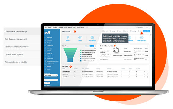 Probeer Act! 14 dagen gratis om de diverse functies te leren kennen en te ontdekken hoe het je kan helpen de prestaties van je verkoopteam te verbeteren en je omzet te verhogen.