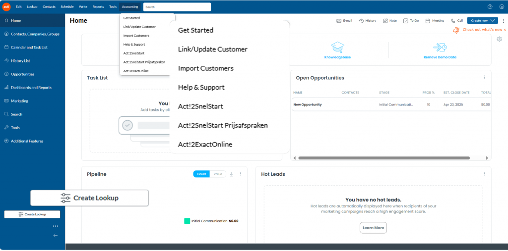 Voorkom dubbel werk en fouten. Dankzij de koppeling tussen Act! CRM en je boekhoudsysteem heb je altijd actueel inzicht in de financiële status van je klanten. Of je nu werkt met SnelStart, Exact Online of internationale oplossingen als Xero, QuickBooks of MYOB: je klantdata, verkoopinformatie en financiële historie zijn gekoppeld en overzichtelijk beschikbaar binnen je CRM-omgeving.