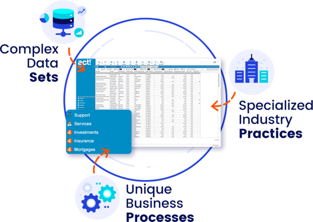 Creëer gerichte verkoopcampagnes die gebruikmaken van uitgebreide inzichten die zijn verzameld uit Act! Custom Industry Tables: maak aangepaste groepen, wijs verkoopactiviteiten toe en rapporteer over verkoopbereik.