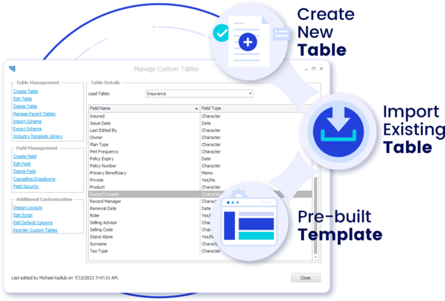 Act! Custom Tables kunnen eenvoudig worden gemaakt en aangepast zonder dat er extra ontwikkelingsmiddelen nodig zijn. Custom Tables bevatten ook kant-en-klare branchesjablonen, zodat je direct aan de slag kunt.