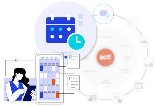Laat klanten jouw beschikbaarheid bekijken en direct een afspraak inplannen. Afspraken worden automatisch toegevoegd aan je Act!-agenda en nieuwe contacten worden automatisch aangemaakt als ze nog niet in je CRM staan. Zowel jij als je klant ontvangen direct een bevestiging van de boeking.