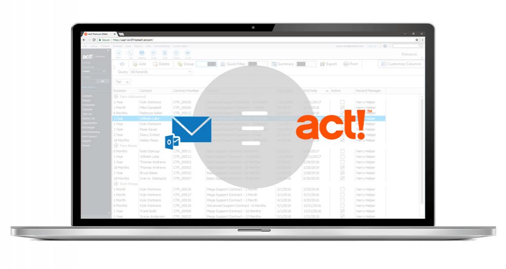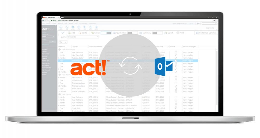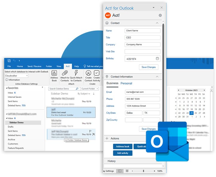 Act! CRM biedt een rijke en geavanceerde reeks integratiefuncties met Outlook® waarmee jij en je team kunnen werken om eenvoudig databasecontacten, agenda, activiteiten, inkomende en uitgaande e-mails te synchroniseren.